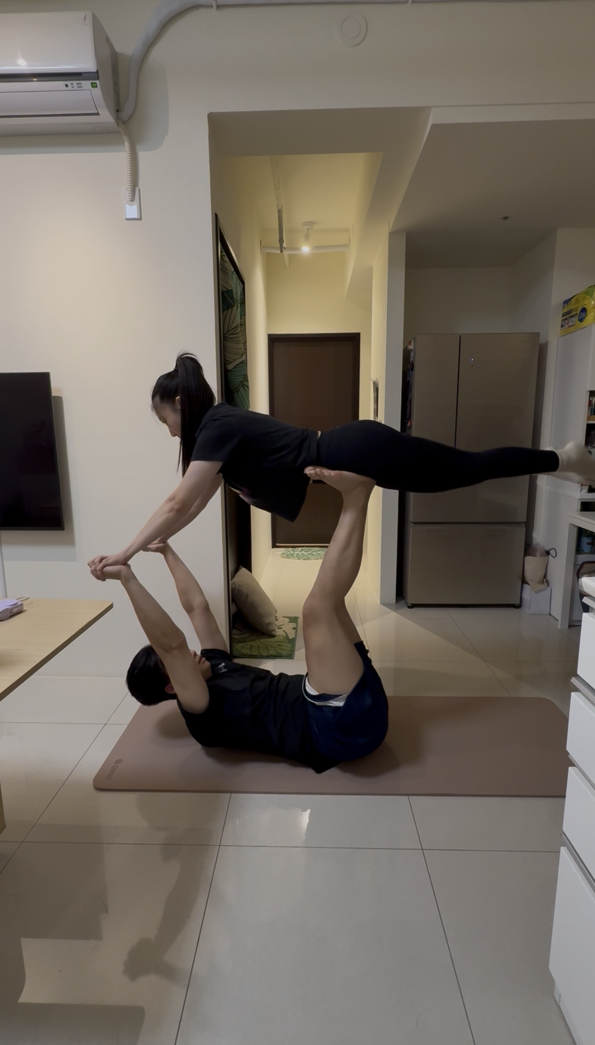 目前是由一位男教練與一位女教練組成的團隊,我們也是夫妻教練,10年前一起在運動產業工作認識、開始一起踏入重量訓練。